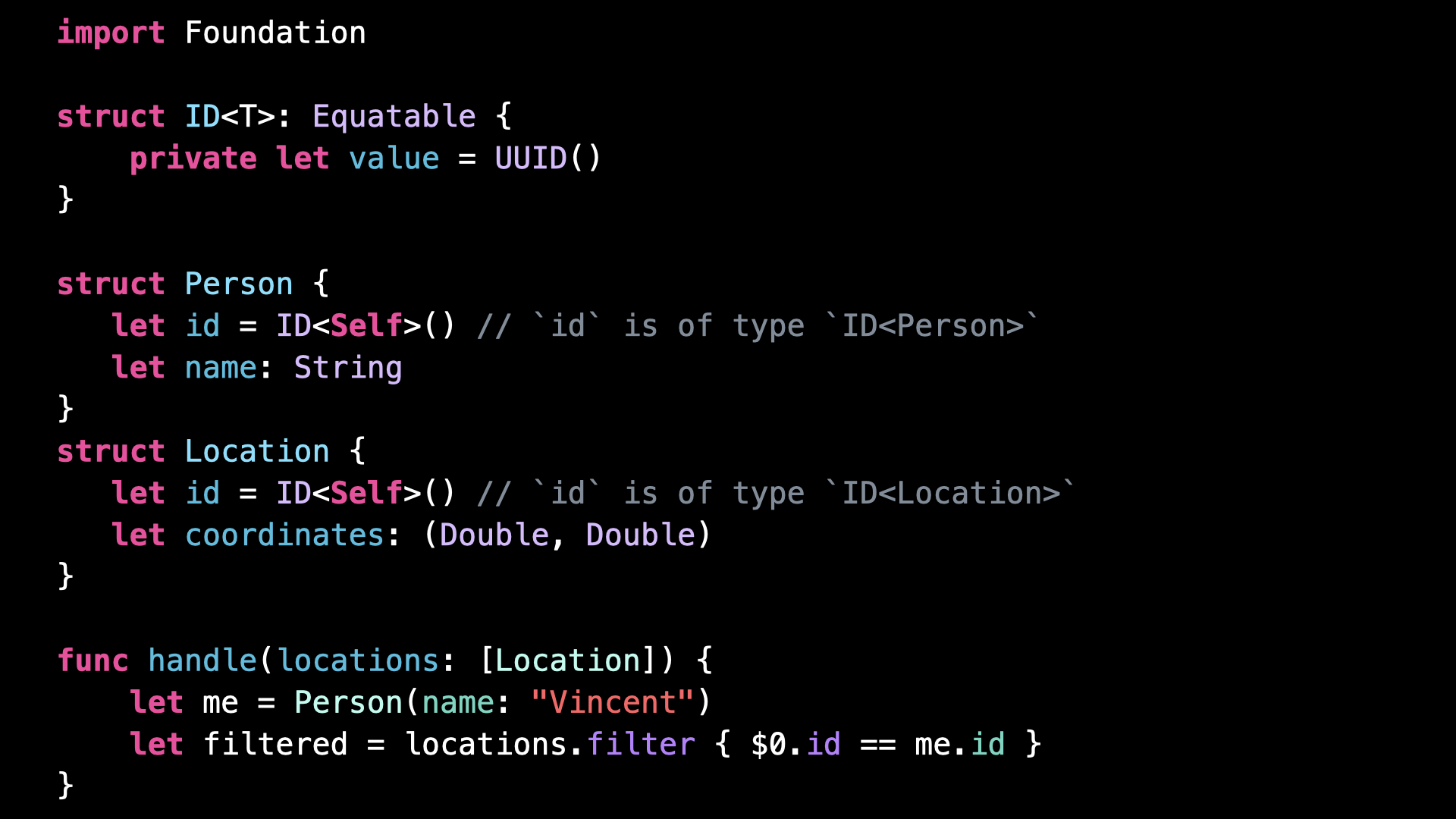 let id = ID<Self>() // `id` is of type `ID<Person>`