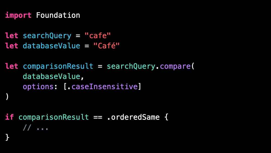 Bad practice: using .lowercased() to compare strings