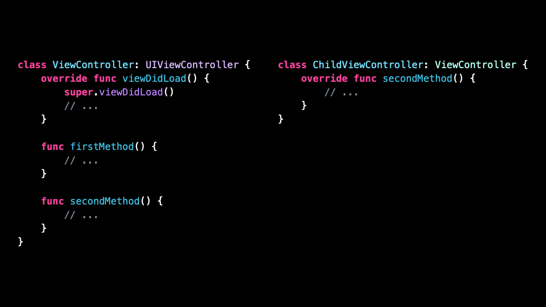 And it’s possible for any subclass of this ViewController to override these methods: