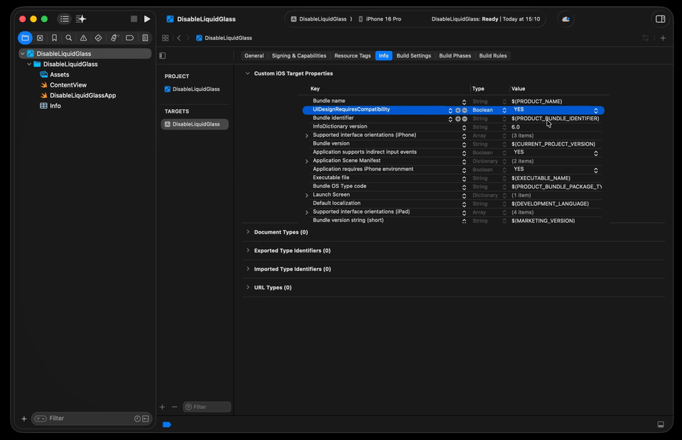 Thanks to this simple change the app will continue to use the previous design system even when running on iOS 26!