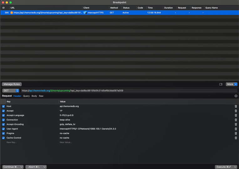 And when the breakpoint triggers, you’ll see this screen, where you can inspect the outgoing request but also modify it: