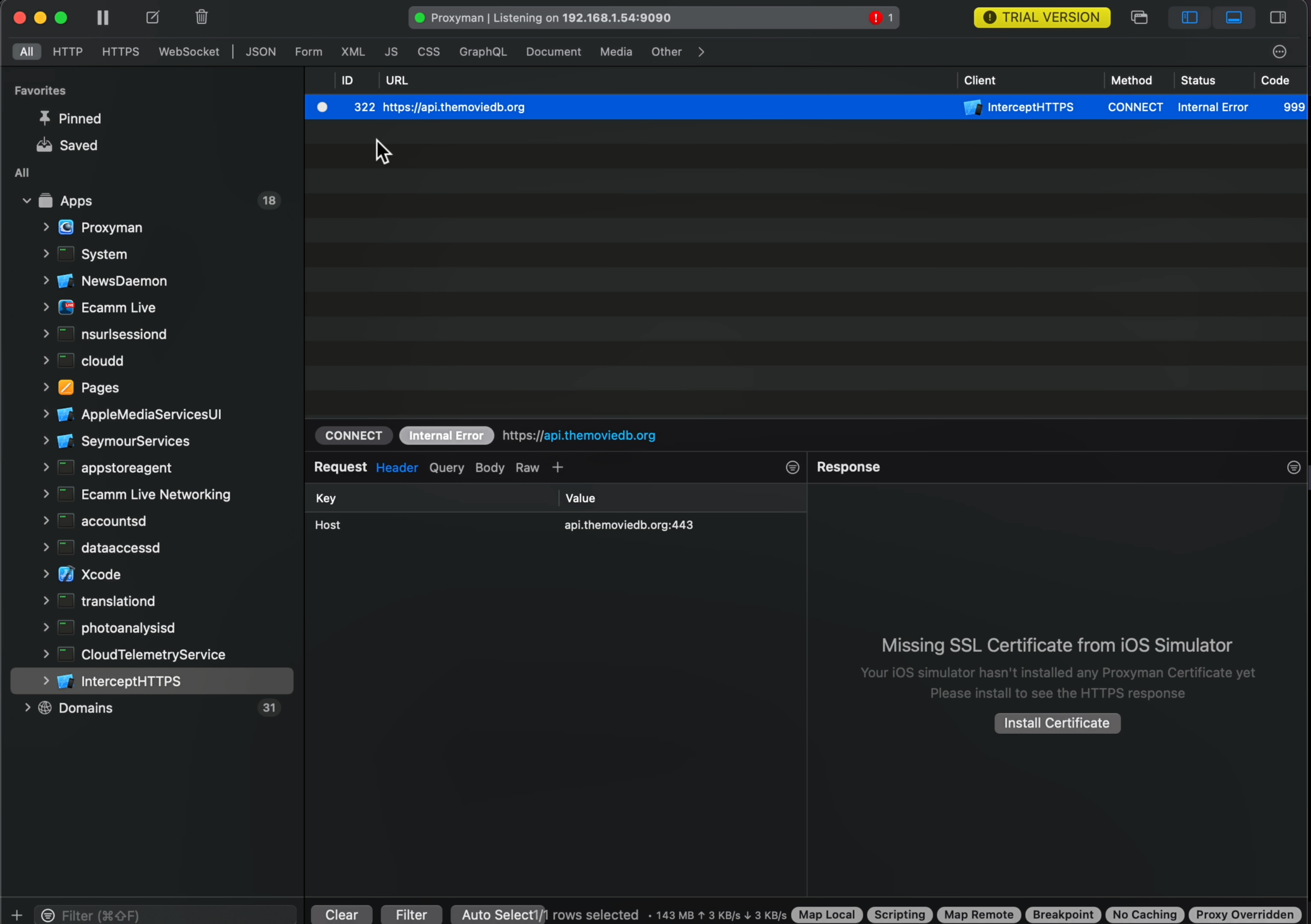 And once that’s done, we’ll just need to relaunch the app and we’ll see that now Proxyman is able to intercept the HTTPS traffic: