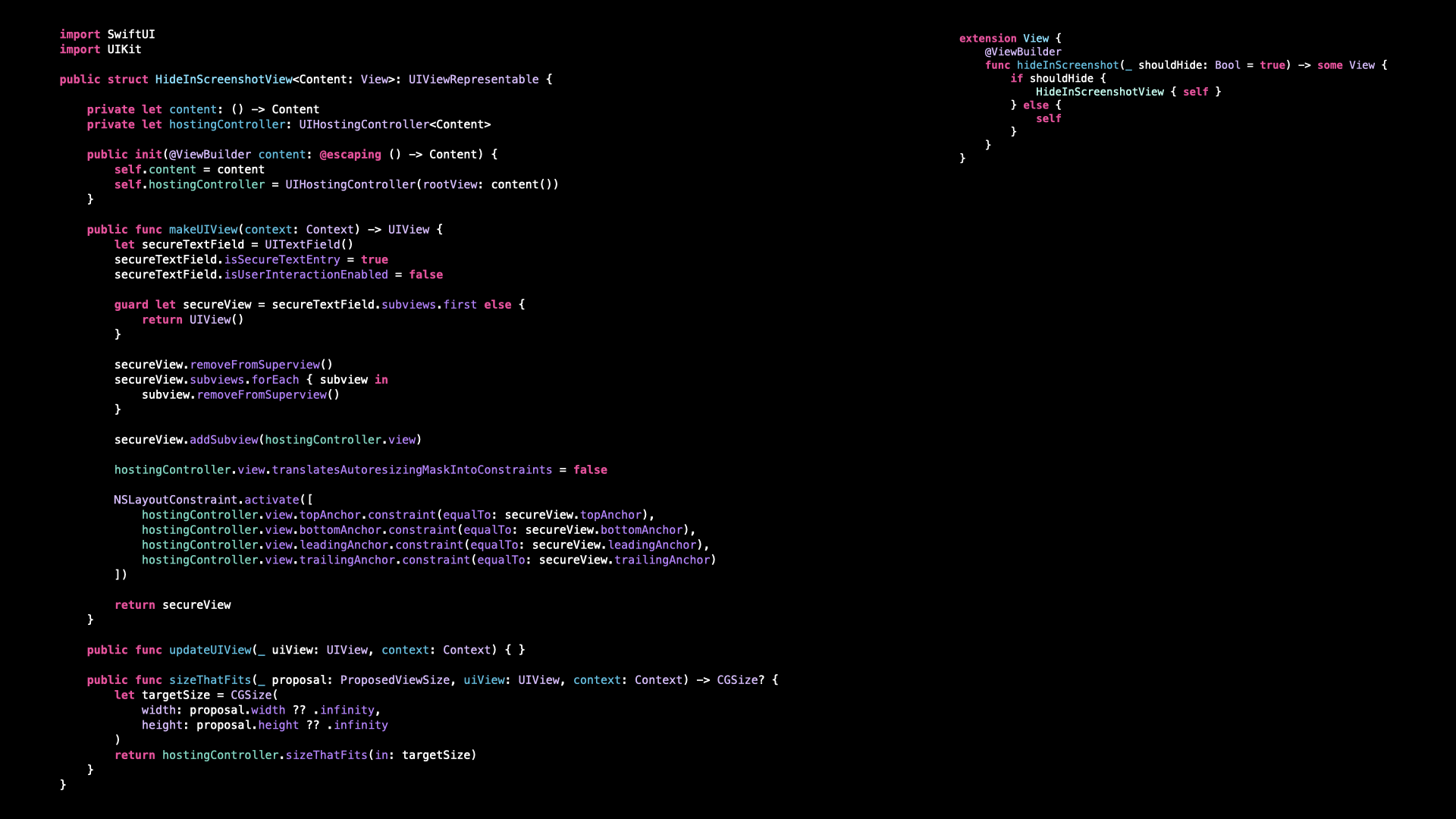 If you ever need to hide the content of a view when the user takes a screenshot, you’ll soon realize that iOS doesn’t offer an official way to implement this behavior!