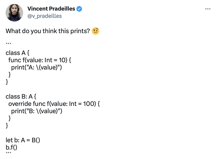 So before you scroll down to find out what the correct answer is, please take a few seconds to read the code attentively, try to figure out what your answer would be and, most importantly, what’s the reasoning behind the answer you’ve chosen.