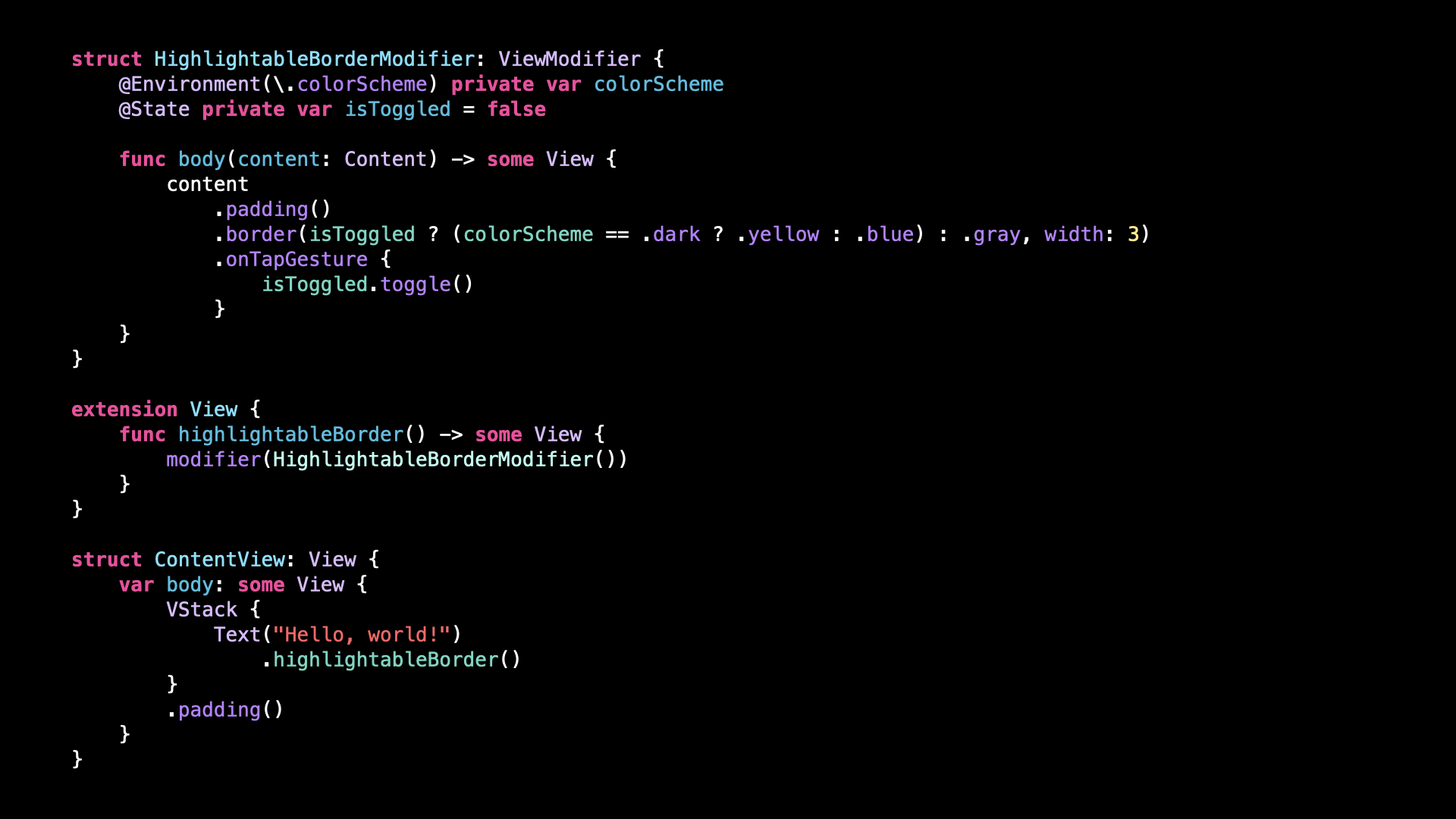 As you can imagine, it’s exactly in this situation that ViewModifier