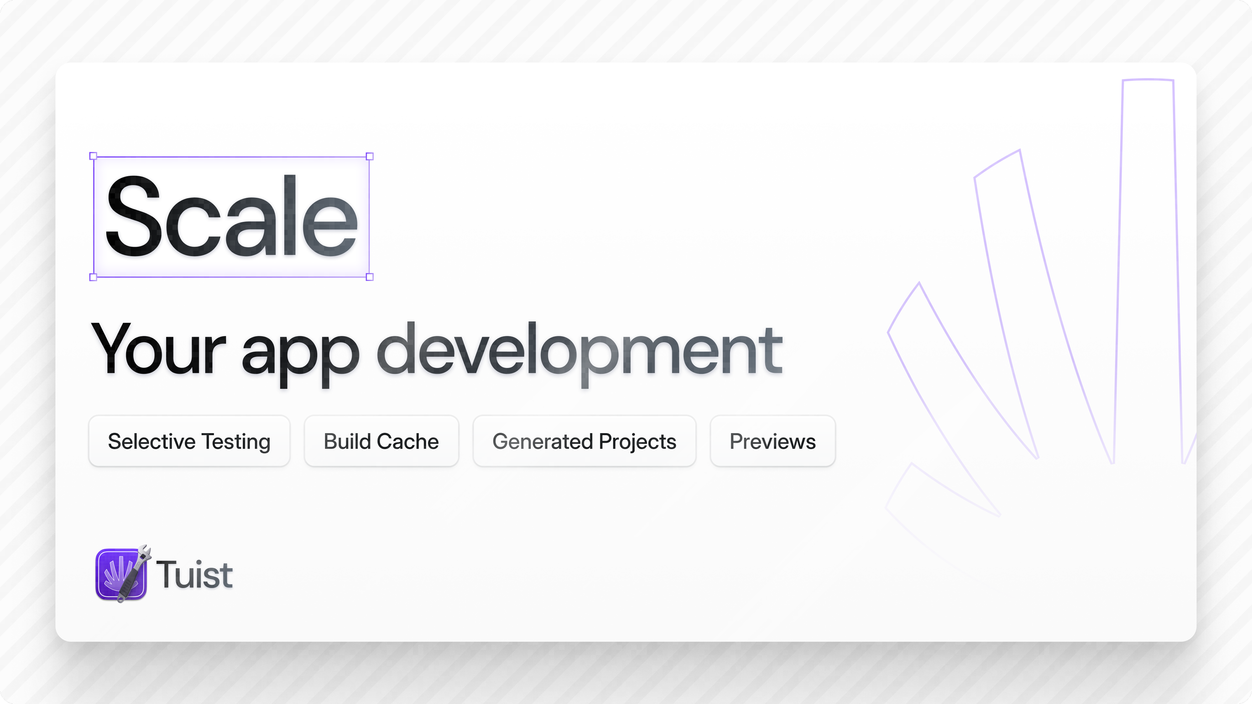 Supercharge your Xcode development with Tuist. Unlock faster workflows through binary caching, selective testing, and instant previews while gaining valuable insights into your daily development process.